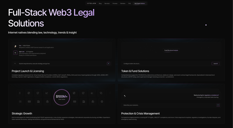 Ape Law is a UAE-based law firm built for SaaS, Web3, and AI startups navigating complex legal environments. With backgrounds in international Big Law, our team now delivers fast, founder-aligned legal support that actually fits startup timelines. We handle the essentials: company formation, cap table structuring, token compliance, and global fundraising. As specialists in VARA, ADGM, and MiCA, we help you launch and scale in regulated markets with confidence. Ape Law combines legal rigor with startup speed—no fluff, no delays. We grow with our clients, from idea to Series A and beyond. Build faster, raise smarter, and stay compliant with Ape Law.