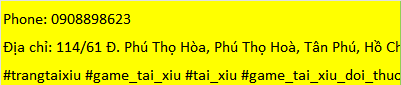 game tài xỉuPhone: 0908898623 Địa chỉ: 114/61 Đ. Phú Thọ Hòa, Phú Thọ Hoà, Tân Phú, Hồ Chí Minh, Việt Nam #trangtaixiu #game_tai_xiu