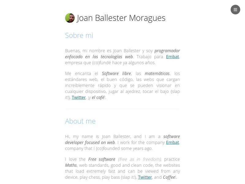 Amante de GNU/Linux y del Software Libre, Miembro asociado de la FSF, Adicto a la Programación, experto en GLAMP y Desarrollo Frontend. Trabajo en embat.es
