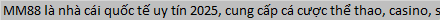 MM88 là nhà cái quốc tế uy tín 2025, cung cấp cá cược thể thao, casino, slot và nhiều game hấp dẫn. Đăng ký ngay để nhận ưu đãi khủng.