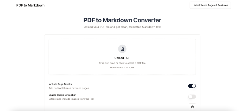 Transform your PDFs into AI-ready data in seconds. Our tool effortlessly converts even the most complex PDF documents into clean, structured Markdown — optimized for use in large language models, chatbots, and intelligent automation systems. No more wasting time on manual formatting or extracting scattered information. With just one click, you get organized, machine-readable content that integrates smoothly into your AI workflows. Whether you're training models, building smart assistants, or managing content pipelines, our solution helps you work faster, cleaner, and more efficiently. Make every document count — with smart, scalable data conversion.