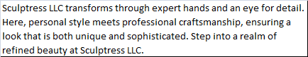 Sculptress LLC transforms through expert hands and an eye for detail. Here, personal style meets professional craftsmanship, ensuring a look