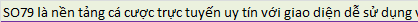 SO79 là nền tảng cá cược trực tuyến uy tín với giao diện dễ sử dụng và bảo mật cao. Các ưu đãi hấp dẫn, như khuyến mãi nạp tiền 789K, giúp n