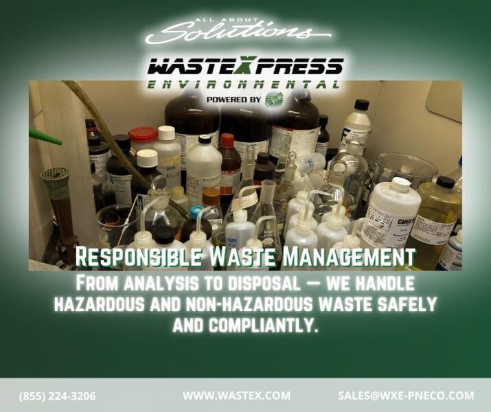 WasteXpress is the Pacific Northwest's premier hazardous and non-hazardous waste disposal company. For over 35 years, we have been committed to serving local businesses and Fortune 500 companies across all industries in Oregon and Washington State. We follow environmentally-safe, effective, and cost-saving measures, provide on-time cleanup and transportation, and help you achieve growth, success, and peace of mind. Our hazardous waste disposal services include toxic, corrosive, paint, lead, industrial, commercial, municipal, chemical, mercury, lab packing, remediation, decontamination, inspections, and more. In addition to being licensed, insured, and bonded, we’re RCRA, CERCLA, EPA, OSHA, and DOT compliant. Get a free fast quote today. E-mail:salesinfo@wxe-pneco.com,visit:https://www.wastex.com/ call:(855) 224-3206 location :5812 S Adams St, Unit Ste B ,Business Hour:Mon - 8am - 5pm