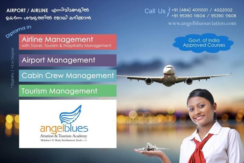 Angel Blues Aviation and Tourism Academy offer comprehensive programs in aviation management and related fields. These colleges provide students with a strong foundation in areas such as airport operations, air traffic control, airline management, and aviation law. Angel Blues Aviation and Tourism Academy, Kochi, have state-of-the-art facilities including flight simulators, aircraft maintenance labs, and well-equipped classrooms. They also offer opportunities for internships with leading airlines and airports which can help students gain practical experience before they enter the workforce. Overall, pursuing a BBA in aviation from an esteemed institution can be an excellent career choice for those interested in the dynamic field of aviation management.