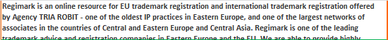 Regimark is an online resource for EU trademark registration and international trademark registration offered by Agency TRIA ROBIT - one of the oldest IP practices in Eastern Europe, and one of the largest networks of associates in the countries of Central and Eastern Europe and Central Asia. Regimark is one of the leading trademark advice and registration companies in Eastern Europe and the EU. We are able to provide highly professional trademark registration services at affordable prices that are significantly lower than those of our competitors.