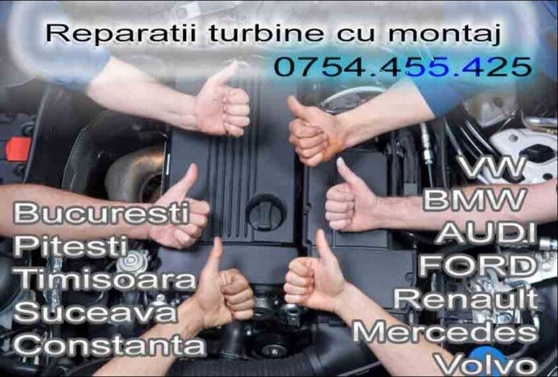 Reparatia consta in inlocuirea pieselor cu altele noi, ramanand din turbosuflanta veche doar galeria de evacuare (fonta) + compresorul de admisie, rezultand o turbina noua (refabricata) din punct de vedere mecanic. Dispunem de o echipa cu experienta care poate face fata oricarei tip de probleme. Reparatii turbosuflante pentru orice model de autoturism. Primim si trimitem comenzi in toata tara prin intermediul firmelor de courierat rapid, daca turbina este demontata reparatia este efectuata in aceeasi zi.Turbocompresoare noi si reconditionate la schimb; Proces reconditionat turbina: