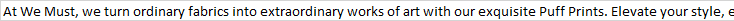 At We Must, we turn ordinary fabrics into extraordinary works of art with our exquisite Puff Prints. Elevate your style, express your person