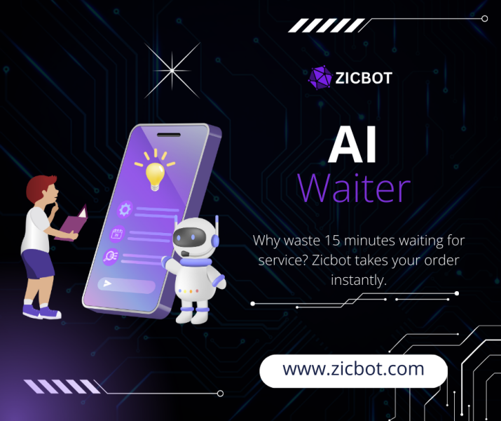 The ZicBot AI Waiter would be an intelligent virtual or robotic assistant designed for restaurants, cafés, hotels, and other food & beverage establishments. Its job is to handle customer interactions, streamline service, and improve operational efficiency using artificial intelligence, automation, and possibly robotics