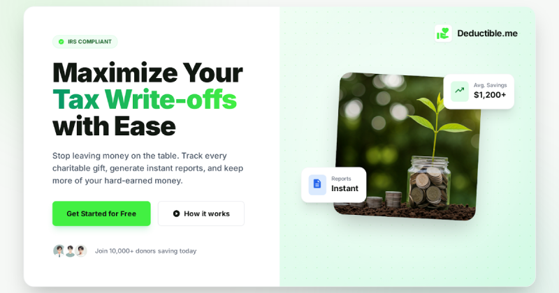 Deductible.me is a donation and tax deduction tracking app built specifically as a modern replacement and alternative to It's Deductible, Intuit’s former charitable donation tracking tool that was decommissioned, leaving many taxpayers without an easy way to track and itemize deductions. Deductible.me helps individuals and families track charitable donations throughout the year so they can maximize tax deductions and stay organized at filing time, without relying on spreadsheets or trying to reconstruct donations months later. The app makes it simple to log cash donations, non-cash item donations such as clothing and household goods, charitable mileage, and stock or asset donations, while attaching receipts and supporting documentation in one place. Built specifically for tax deduction tracking, Deductible.me focuses on fair market value estimation, proper categorization, and clean, export-ready records that work with tax software or accountants, making it a true It’s Deductible alternative rather than a generic expense tracker. By encouraging year-round donation tracking instead of last-minute data entry, Deductible.me helps reduce missed deductions, improve documentation accuracy, and lower stress during tax season, while giving users confidence that their charitable contributions are properly recorded and ready to report. Managing a family’s charitable contributions can be a logistical challenge, but this app simplifies everything into a single shared account. Both partners can log their individual donations of clothing or furniture as they happen, ensuring that nothing falls through the cracks. The intuitive interface is easy for everyone to use, regardless of their technical expertise or tax knowledge. It provides a real-time view of your family's progress toward your annual giving goals. By capturing the value of every bag of outgrown kids' clothes, families often discover they have hundreds of dollars in "hidden" deductions. The secure cloud syncing ensures that your data is always accessible on any device, whether at home or on the go. It is a simple, effective way for modern households to stay organized and financially savvy.