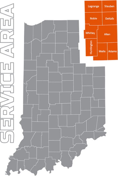 Service Areas: Fort Wayne, Auburn, New Haven, Huntertown, Angola, Ashley, Decatur, Roanoke, Bluffton, Leo-Cedarville, Churubusco, Huntington, Kendallville, Columbia City