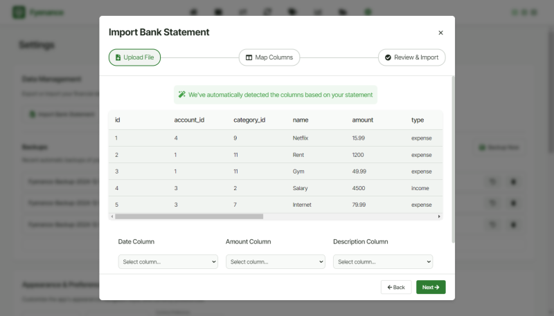 Bank Statement Import: Facilitates the import of bank statements, easing the transaction logging process.