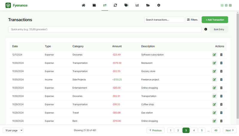 Manual Entry System: Encourages users to manually input their financial data, fostering more conscious spending and budgeting habits.