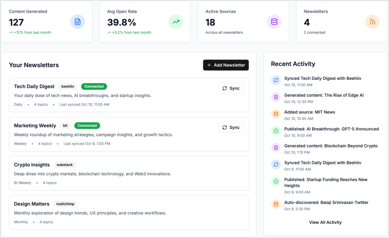 3. Multi-Platform Distribution - Expand your reach across Beehiiv, Substack, LinkedIn Newsletter, and Medium, plus strategic social media management for your newsletter brand.