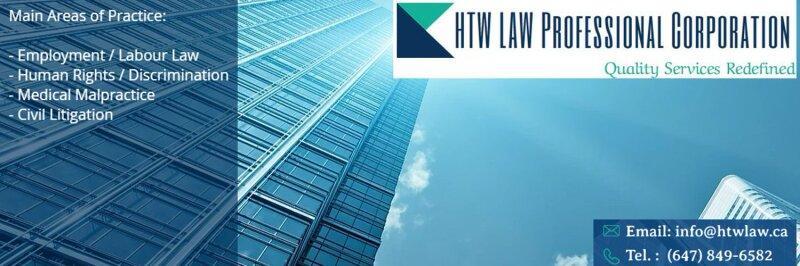 HTW Law – Employment Lawyer Toronto Ontario. Employment Lawyer Servicing the Greater Toronto Areas. Wrongful Dismissal Lawyer, Severance Pay lawyer providing employment law legal service in wrongful dismissal toronto. Constructive Dismissal lawyer, Workplace Harassment lawyer, workplace discrimination lawyer, disability lawyer. Employment Lawyer experienced in Sexual Harassment. GTA employment contract lawyer. Employment lawyer free consultation. No Win No Fee for qualified employment law suites. Sensitive employment law information is handled with care. Quality employment law legal service delivers to you today. Offering employment law emotional support as well. Call or Email Us Now for Immediate Employment Lawyer Assistance.