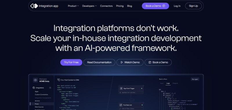 The product works as developer-environment that works together with in-house integration development processes. We're changing how integrations are being built by bringing AI & LLM components into play. You can now consistently perform API calls across multiple apps with just a few lines of code.