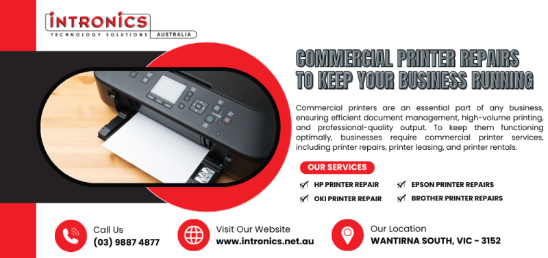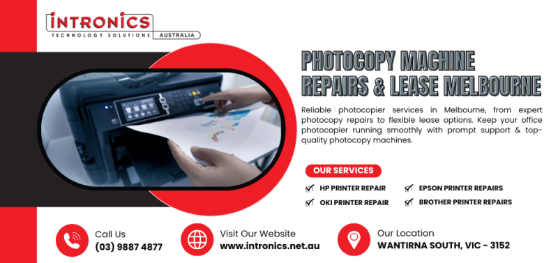 Upgrade and streamline your office print solutions with Intronics (Aust), where sophistication meets functionality. We specialise in printer repairs and offer exceptional photocopier rental in Melbourne that won’t break the bank. We are here to help if you need a quick Brother printer repair in Melbourne or an HP printer repair service. Our vast range of authentic and robust printers and photocopiers guarantees you'll find the perfect match for your operations.