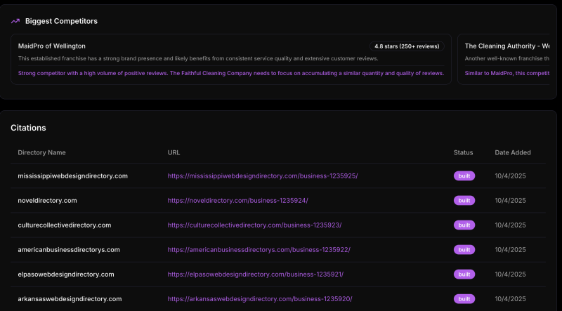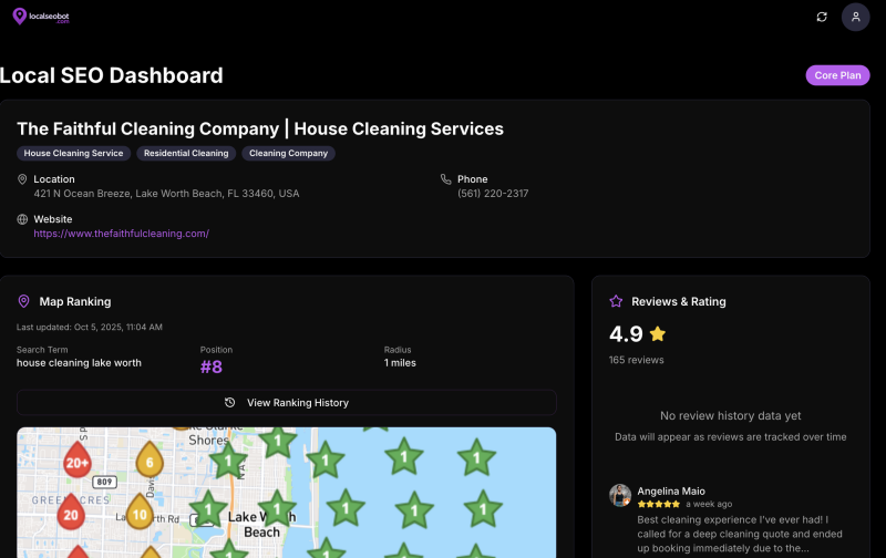 Local SEO Bot is an AI-powered local marketing assistant that helps service businesses show up where it matters most: Google Maps. We differentiate ourselves with AI that acts, not just analyzes, executing the full local SEO plan automatically every week. The platform provides comprehensive Google Business Profile (GBP) Optimization, with the AI fixing categories, services, photos, and crucial UTM/call tracking automatically. It actively builds local authority through consistent Citations & Listings at Scale across top directories and niche sites. The integrated Reviews Engine maximizes testimonial volume and quality via smart SMS/email asks, further boosting your local ranking signals. This powerful automation is ideal for home services and medical/dental practices seeking predictable inbound leads.