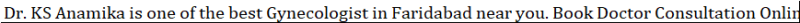 Dr. KS Anamika is one of the best Gynecologist in Faridabad near you. Book Doctor Consultation Online or call us at 99714 53252.