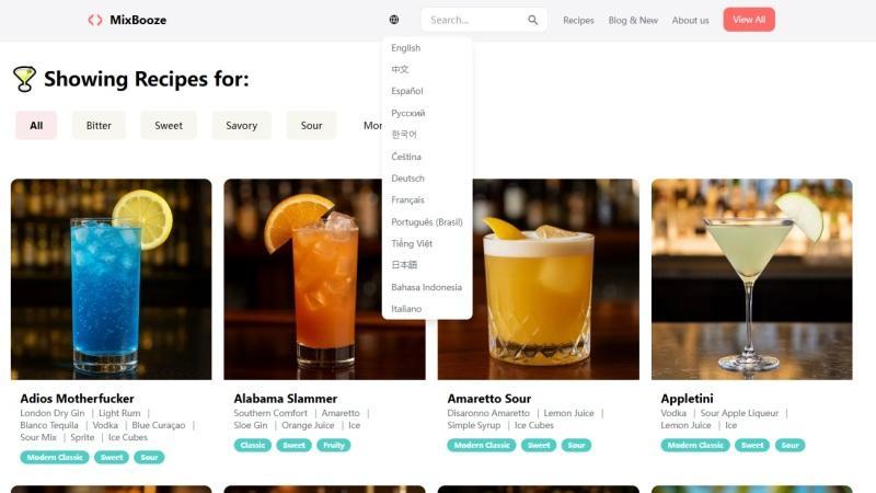 - Multilingual: Whether you're fluent in English, Español, Français, or beyond, MixBooze offers seamless translation so cocktails can speak your language.