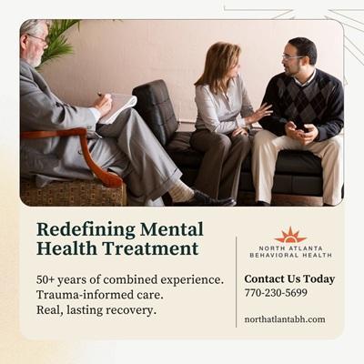 North Atlanta Behavioral Health is an addiction and mental health treatment program located in Roswell, Georgia offering Partial Hospitalization Programming (PHP), Intensive Outpatient Program (IOP) and Outpatient programs for those struggling with addiction, depression, anxiety, bipolar disorder, PTSD, Schizophrenia, and dual diagnosis disorders. Our mission is to help change the lives of those struggling. We know mental health and addiction recovery shouldn't be a one-size-fits-all approach. We aim to make the process as flexible as possible. We offer evidence-based modalities with a trauma-informed approach. Our comprehensive suite of treatment services aids clients in understanding and managing mental health disorders.