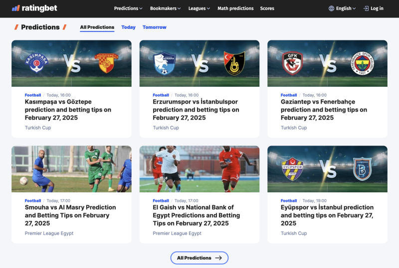 RatingBet is one of the largest resources dedicated to sports betting. Our main goal is to help our readers choose reliable betting sites, as well as to provide up-to-date information about various promotions and bonuses on the betting market. On our website, you can find free betting tips across football, tennis, and basketball. We believe that informed bettors make smarter decisions and have more chances to make a profit, that is why we keep you updated with the team lineups, injuries, and past match statistics, ensuring you have all the key data before placing a bet. We also provide in-depth previews of the biggest sporting events, equipping you with the knowledge needed to make smarter, more strategic bets.