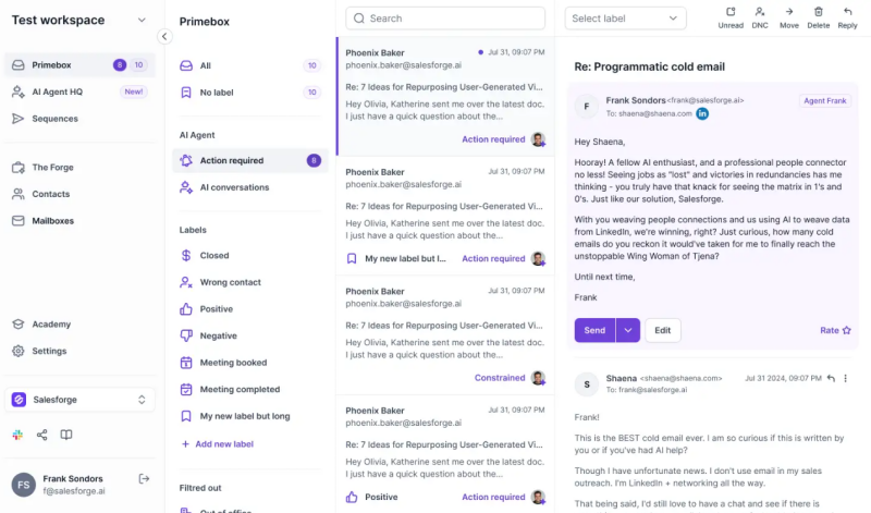 Salesforge is an innovative cold outreach platform that combines the power of AI-driven automation with the insights of experienced sales professionals to optimize engagement and outreach effectiveness. By using advanced AI personalization and AI agents, Salesforge tailors every outreach sequence to meet the specific needs of each prospect, increasing response rates and delivering highly relevant messages. The platform is built to stay on top of rapidly changing sales trends, allowing businesses to refine their outreach strategies in real time. Salesforge focuses on driving high deliverability while ensuring messages are personalized, fostering meaningful connections and driving conversions.