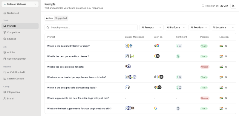 The platform focuses on Answer Engine Optimization (AEO) and Generative Engine Optimization (GEO), helping companies stay visible in AI-driven search experiences. Snezzi allows teams to track prompts across multiple large language models (LLMs) and see how their brand, products, or competitors are referenced in AI responses. This gives businesses valuable insights into how AI systems interpret their content and where improvements are needed.